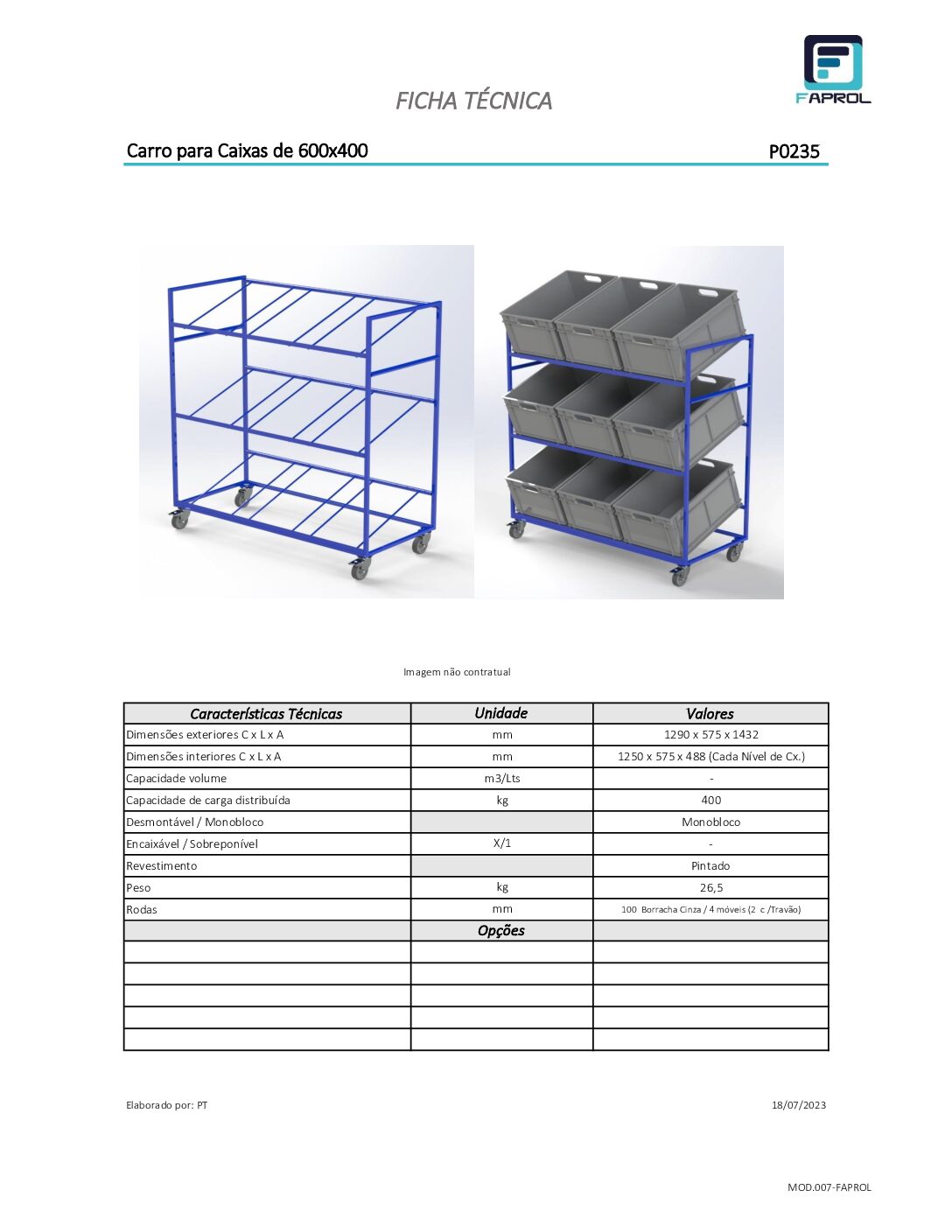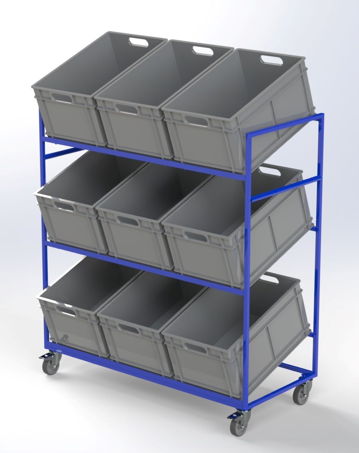 Carro para Cajas de 600x400mm proporciona movilidad eficiente para transporte de artículos en áreas comerciales e industriales. Carro para Cajas de 600x400mm fabricado con estructura reforzada y capacidad ajustada, facilita la reposición y organización de productos. Acabado pintado.
