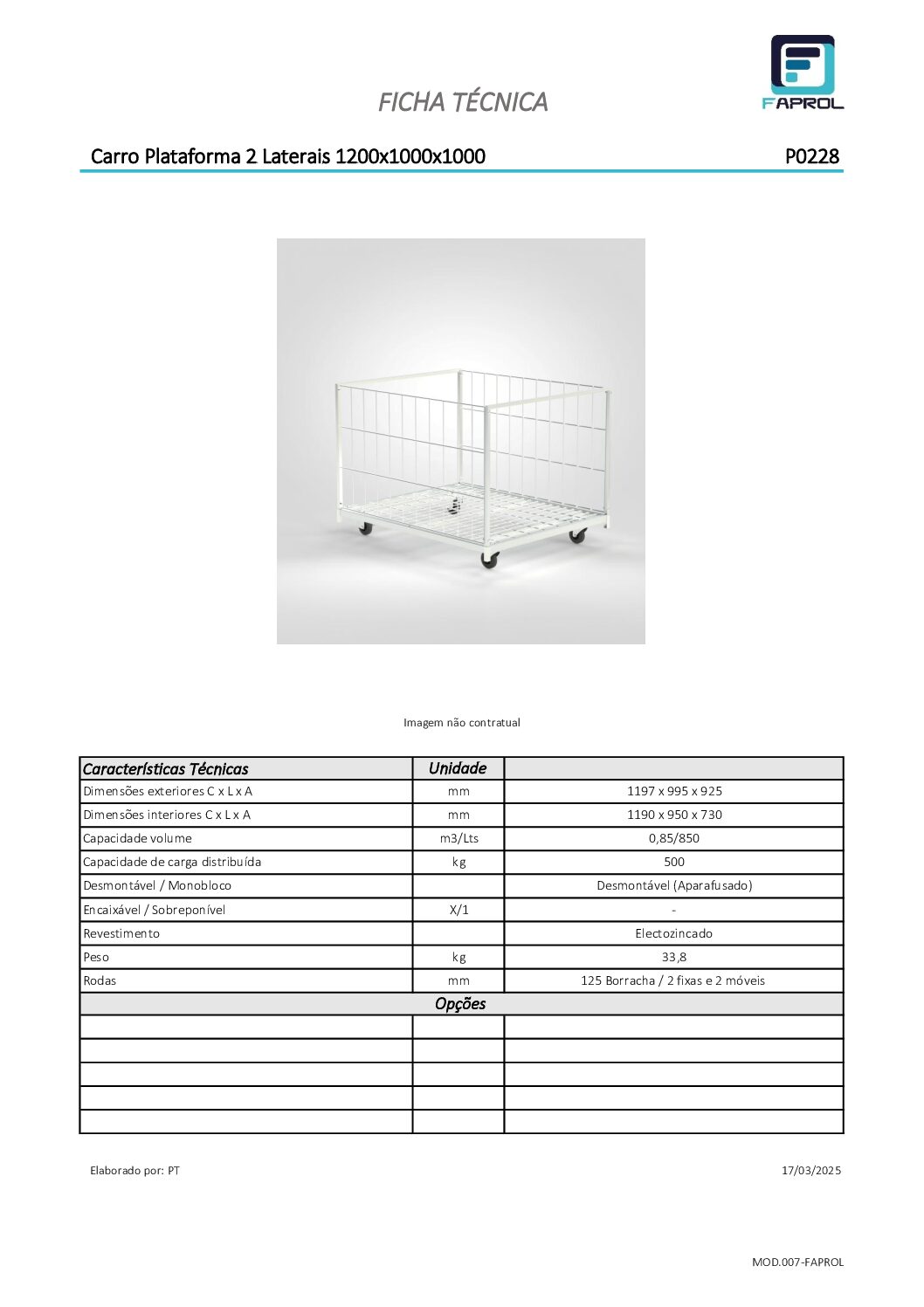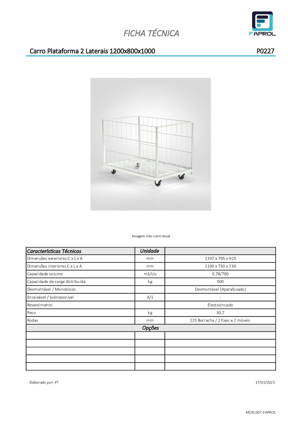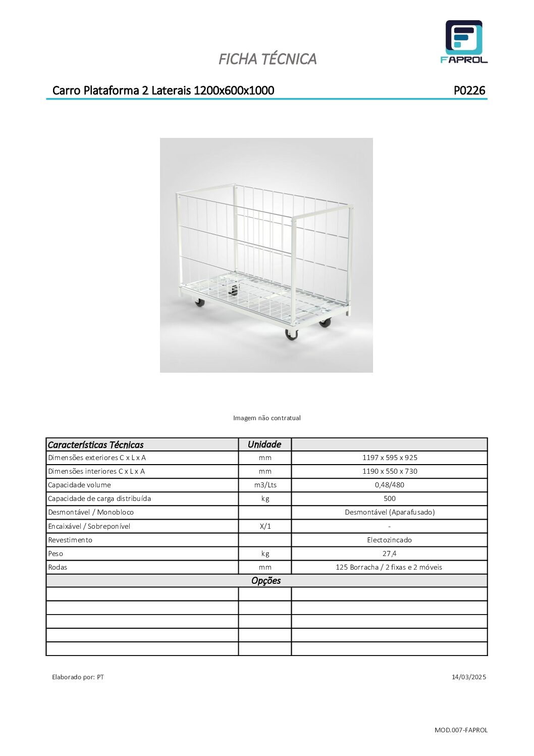 Carro Plataforma 2 Laterales 1200×600/800/1000mm proporciona movilidad eficiente para transporte de artículos en áreas comerciales e industriales. Estos carros Plataforma 2 Laterales 1200×600/800/1000mm están destinados a transportar grandes volúmenes. Capacidad de carga de 500Kg, acabado electrozincado.
