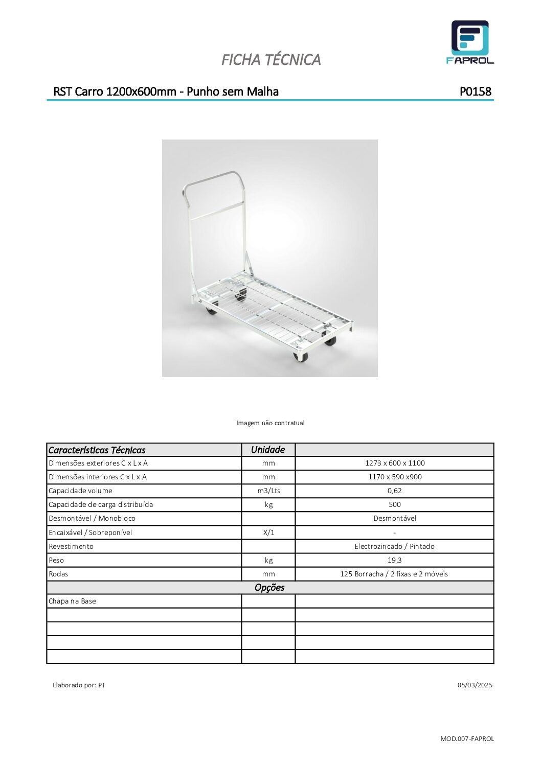 RST Carro 1200x600mm – Mango sin Malla proporciona movilidad eficiente para transporte de artículos en áreas comerciales e industriales. Carro RST 1200X600mm fabricado con estructura reforzada y capacidad de carga de 500kg. El Carro RST 1200X600mm facilita la reposición y organización de productos. Opción chapa en la base.
