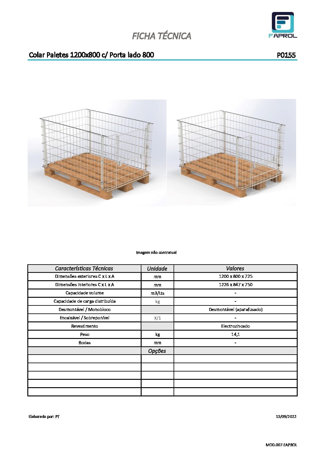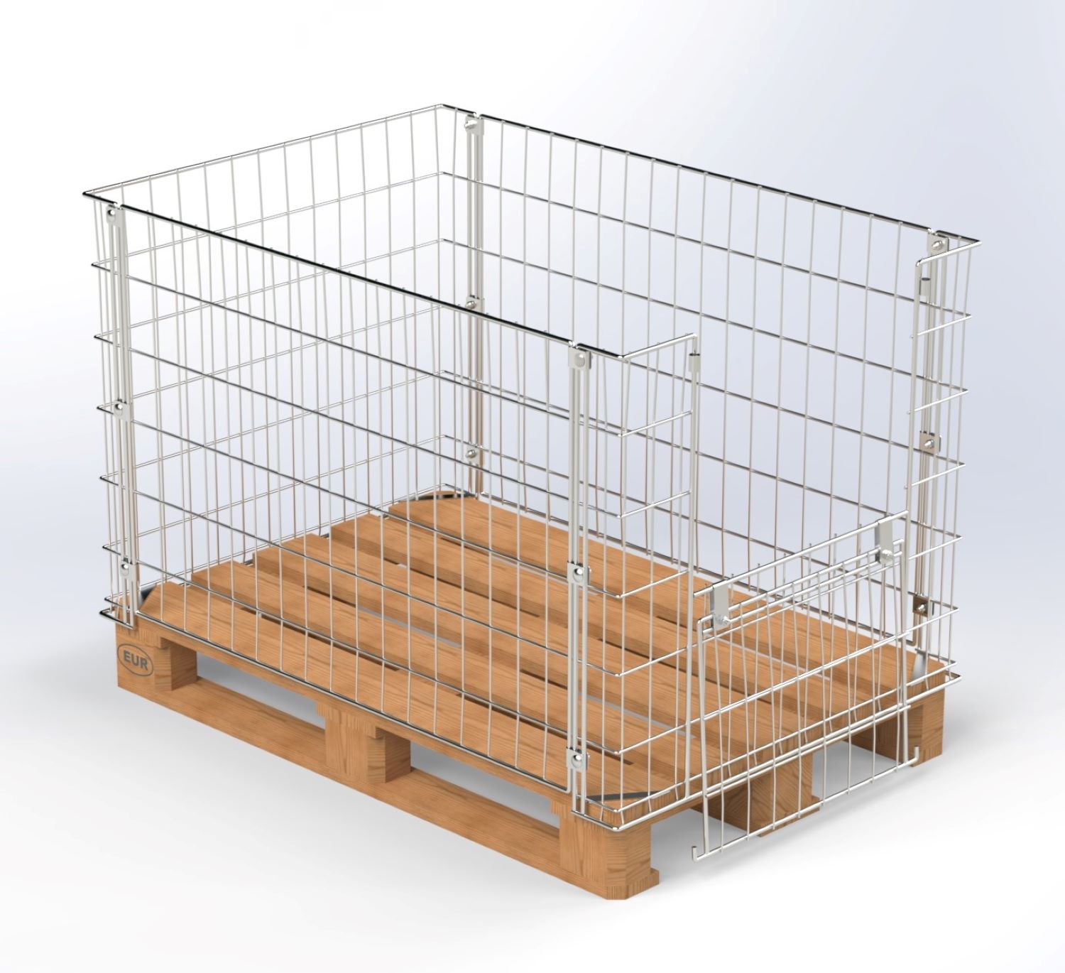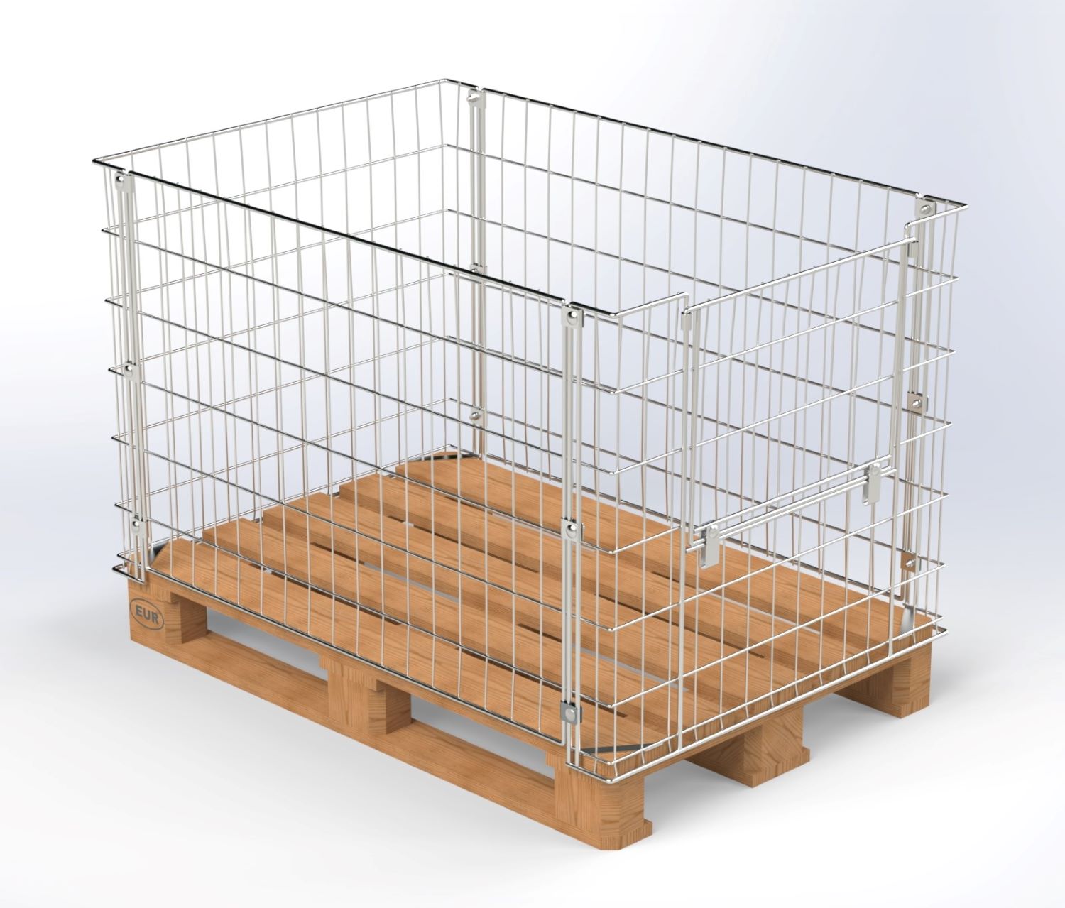 Cuello de palet 1200×800 con media puerta en el lado de 800 mm. Cuello de palet metálico, plegable y no apilable, construcción de alambre con media puerta para facilitar el acceso. Solicita un presupuesto: