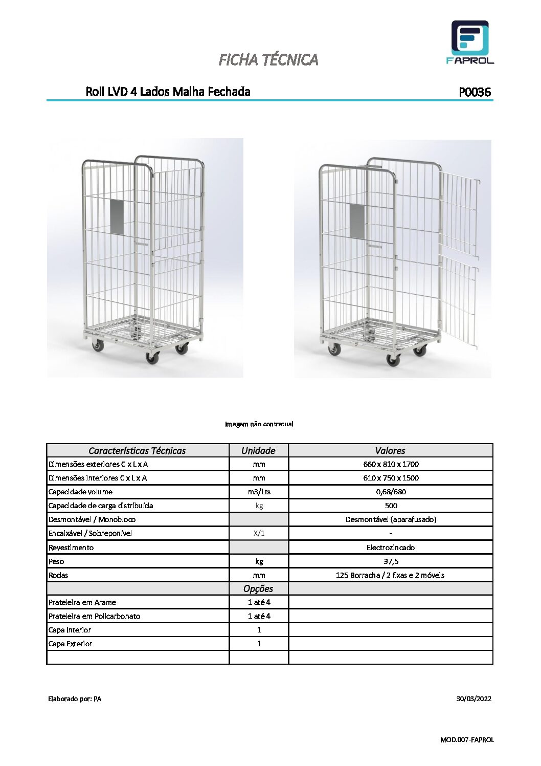 El Roll Contenedor LVD Malla Cerrada fue concebido para el transporte de productos de menores dimensiones.